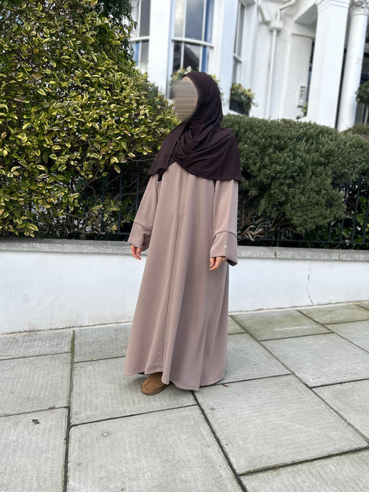 ~Husna~ Embroidered Crepe Abaya - Beige/beige detailing