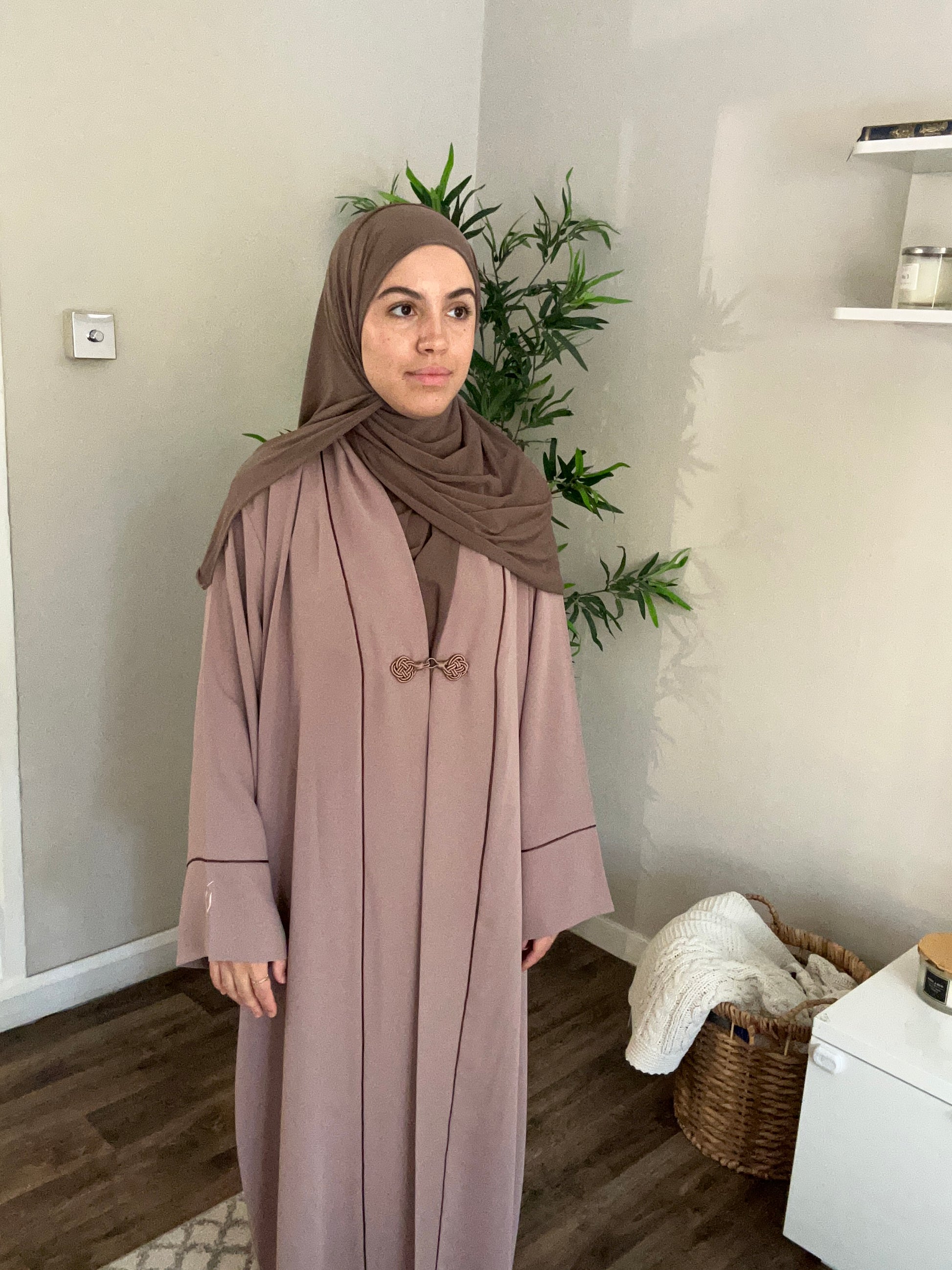 elevate your look with this open abaya tailored from lightweight high quality crepe fabric for a smooth and comfortable fit.